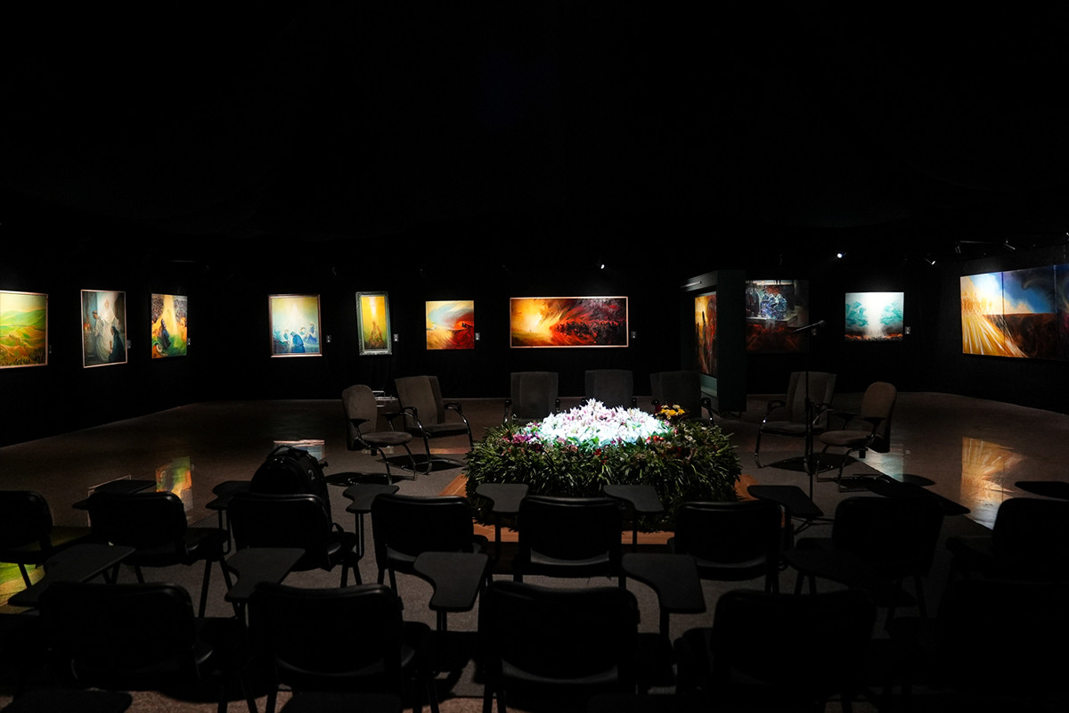 آئین افتتاح نمایشگاه آثار نقاشی عبدالحمید قدیریان با عنوان نقل «نور آمد» و با موضوع نَقل تصویری نابودی رژیم صهیونیستی به روایت قرآن، بعدازظهر امروز دوشنبه ۱۷ آذر ماه ۱۴۰۴ با حضور حجت الاسلام محمد قمی رئیس سازمان تبلیغات اسلامی، عبدالحمید قدیریان و هنرمندان در گالری حبیب‌اله صادقی حوزه هنری برگزار شد.
