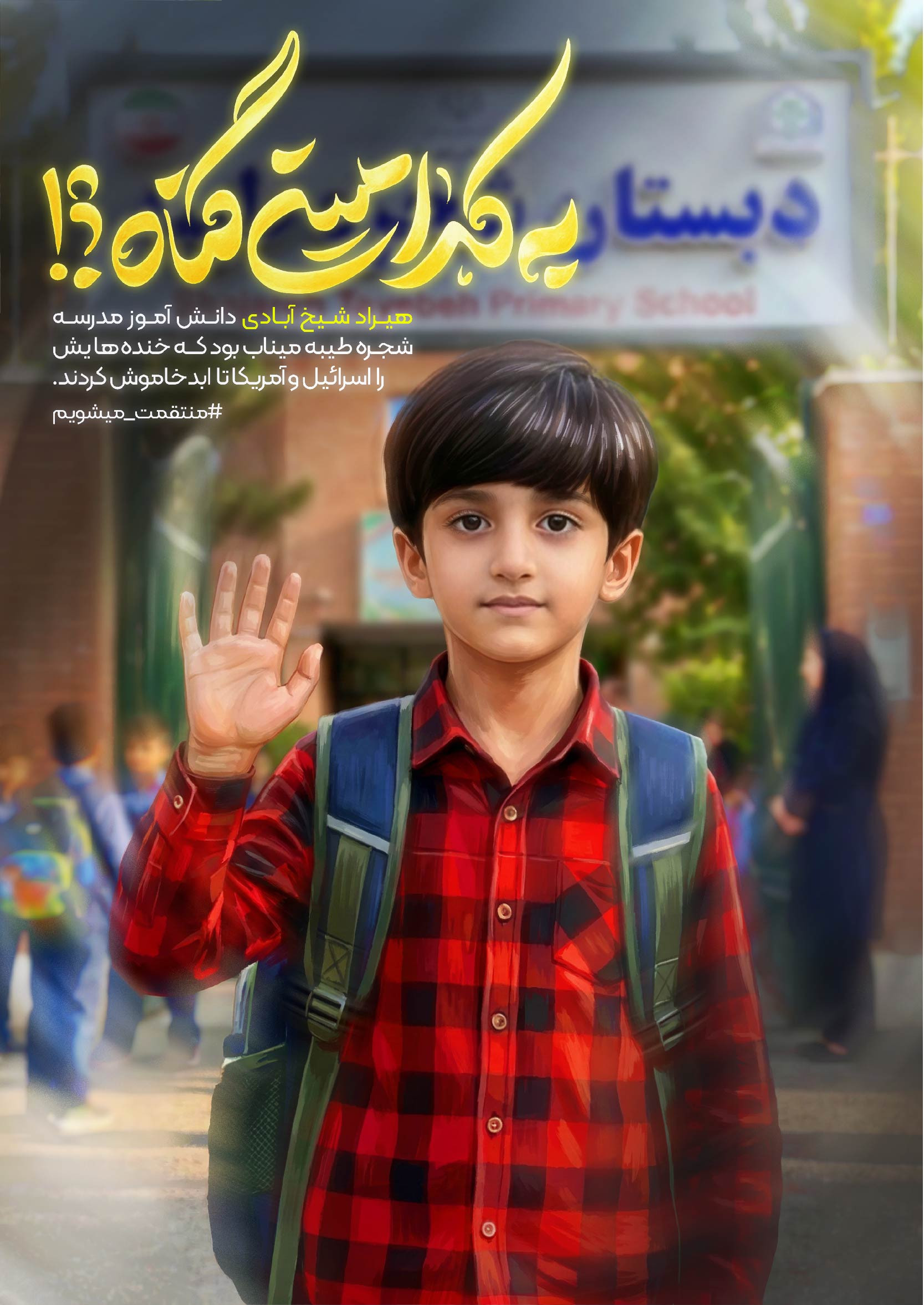اینها قابهایی است از دانش آموزان شهید دبستان شجره طیبه میناب. دانش آموزان شهیدی که تنها چند ساعت پس از آغاز جنگ تحمیلی دوم آمریکایی و صهیونی رمضان ۱۴۰۴ به دست کودک کشان امروز جهان پر پر شدند. این دبستان در همان ساعات ابتدایی جنگ با دو بمب هدف حمله قرار گرفت. بمب اول منجر به شهادت گروهی از دانش آموزان شد و بمب دوم دانش آموزان و معلم این مدرسه را که در نمازخانه مدرسه پناه گرفته بودند به شهادت رساند. به یاد ۱۶۵ دانش آموز شهید این دبستان.
