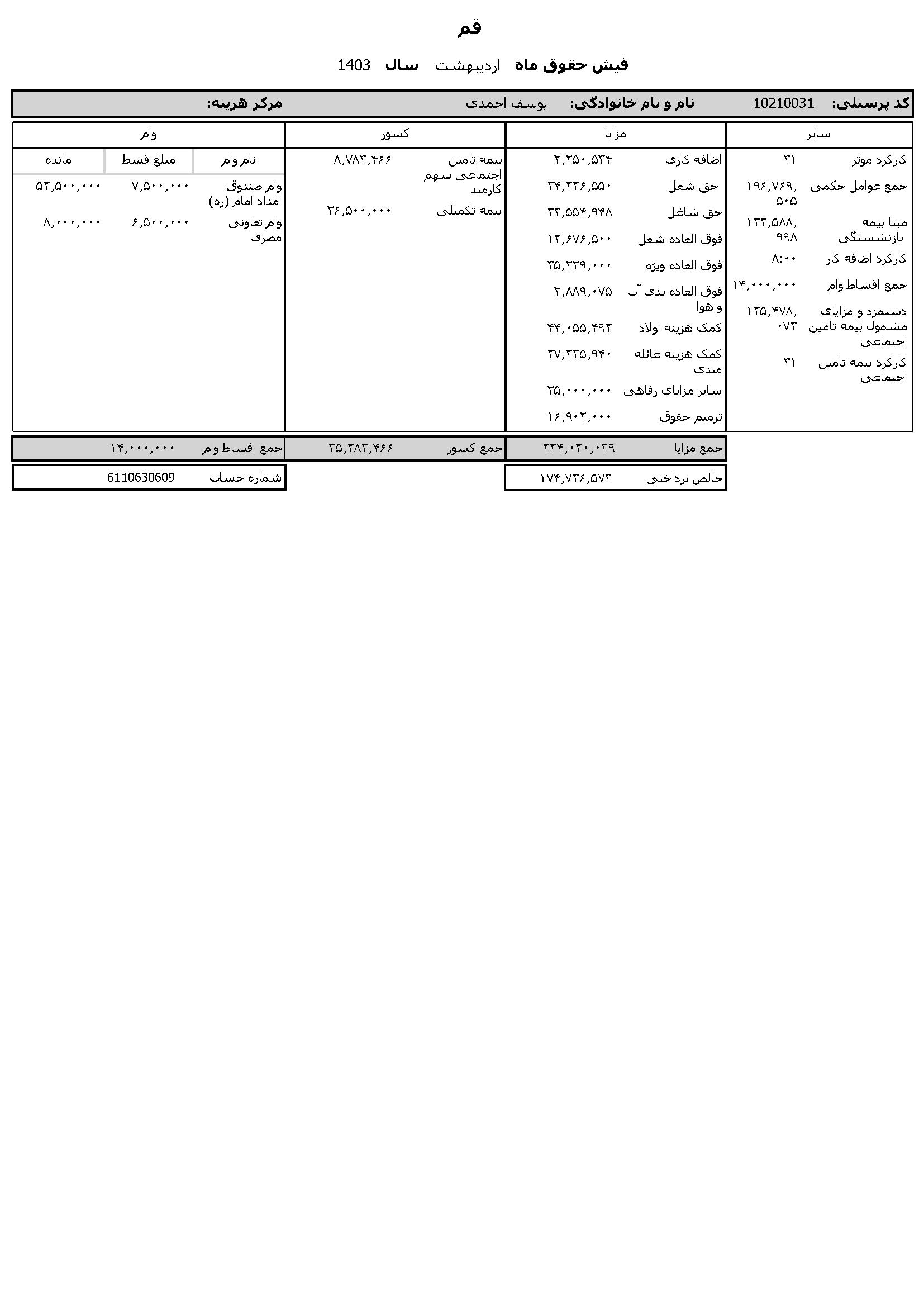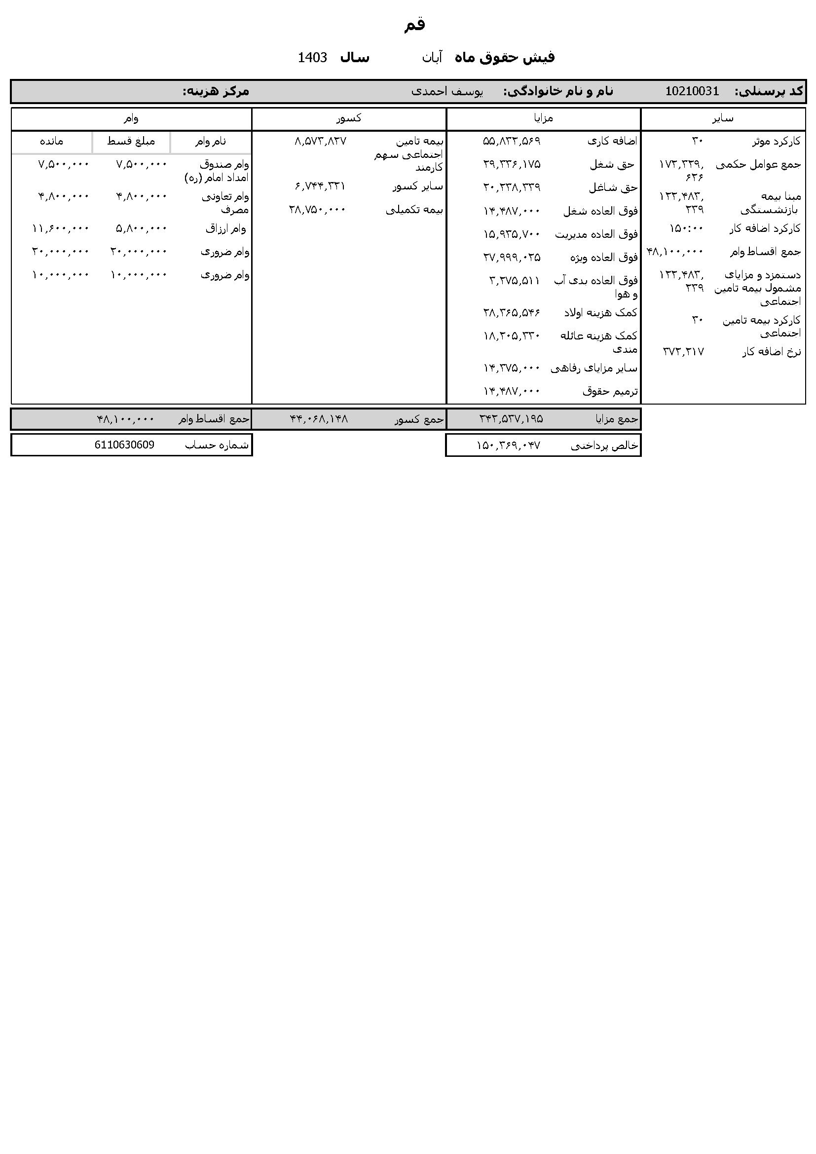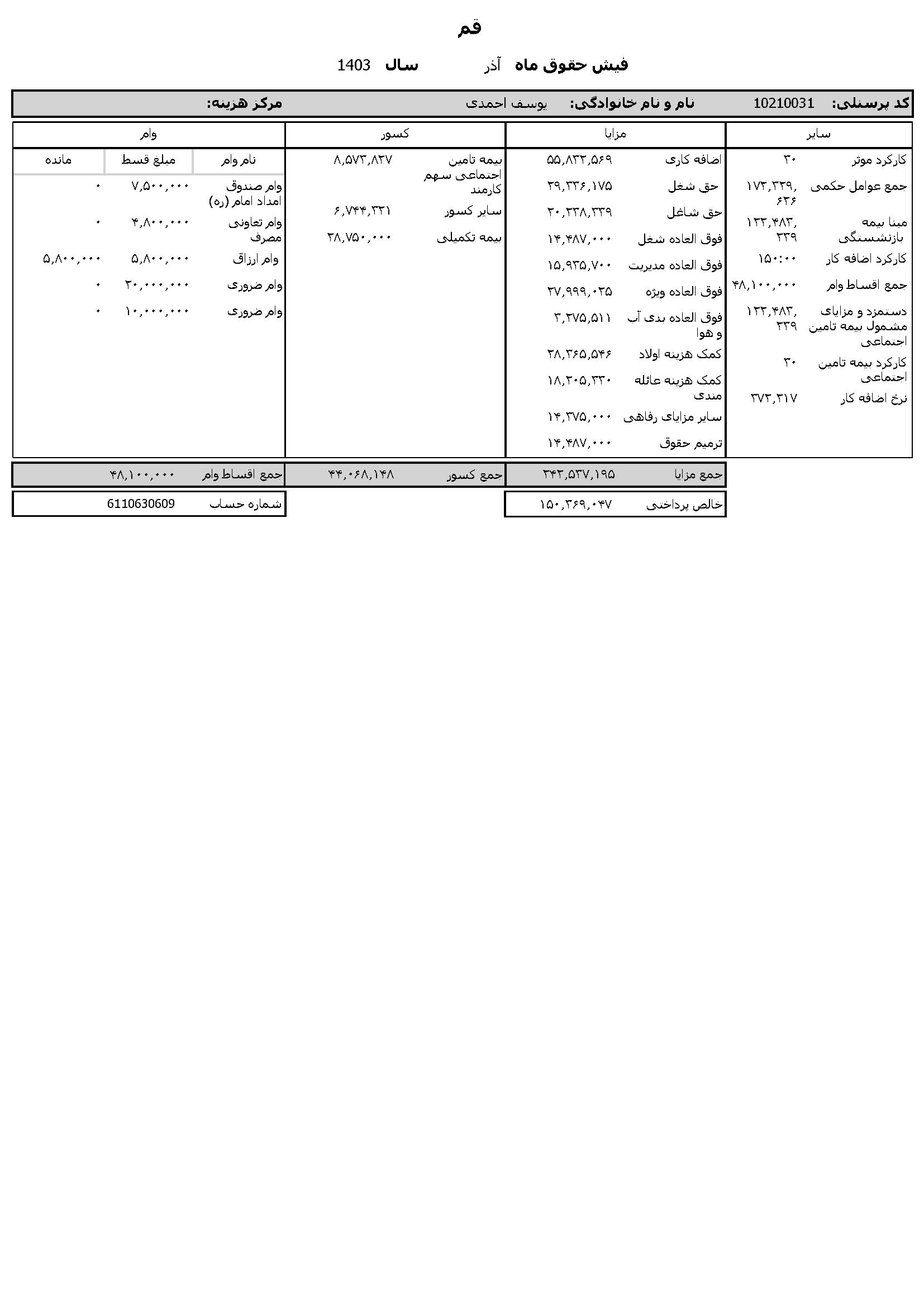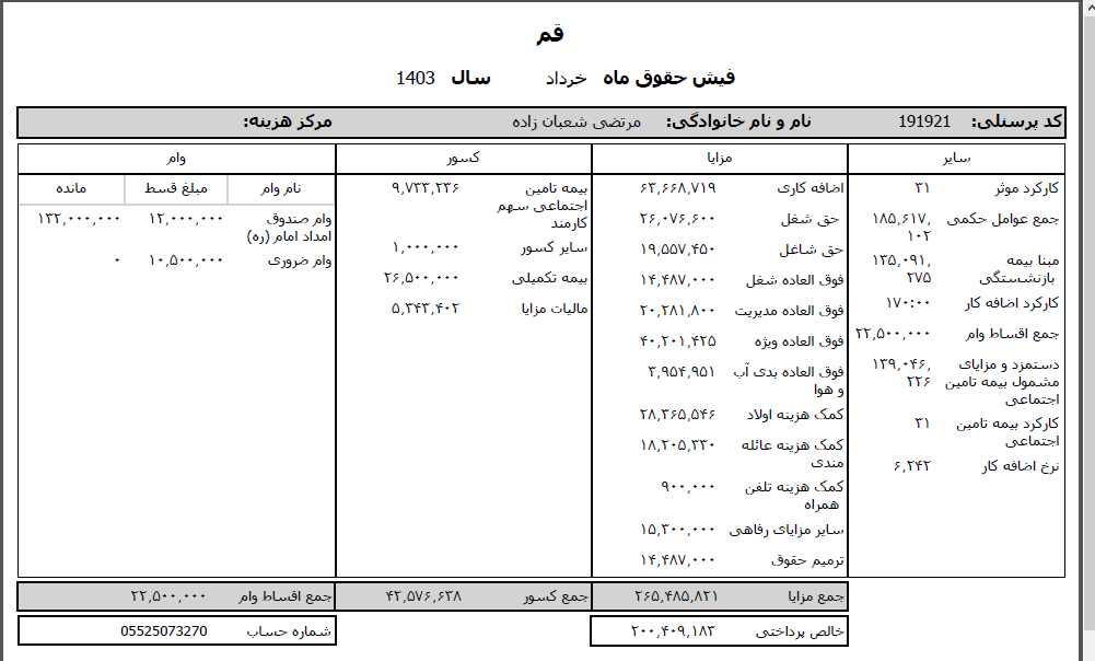حقوق عمومی اطلاعات حقوق و مزایای ۱۲ ماهه مدیر کل تبلیغات اسلامی استان قم و فیش حقوقی ۱۲ ماهه معاون اداری و مالی منتشر شد.
