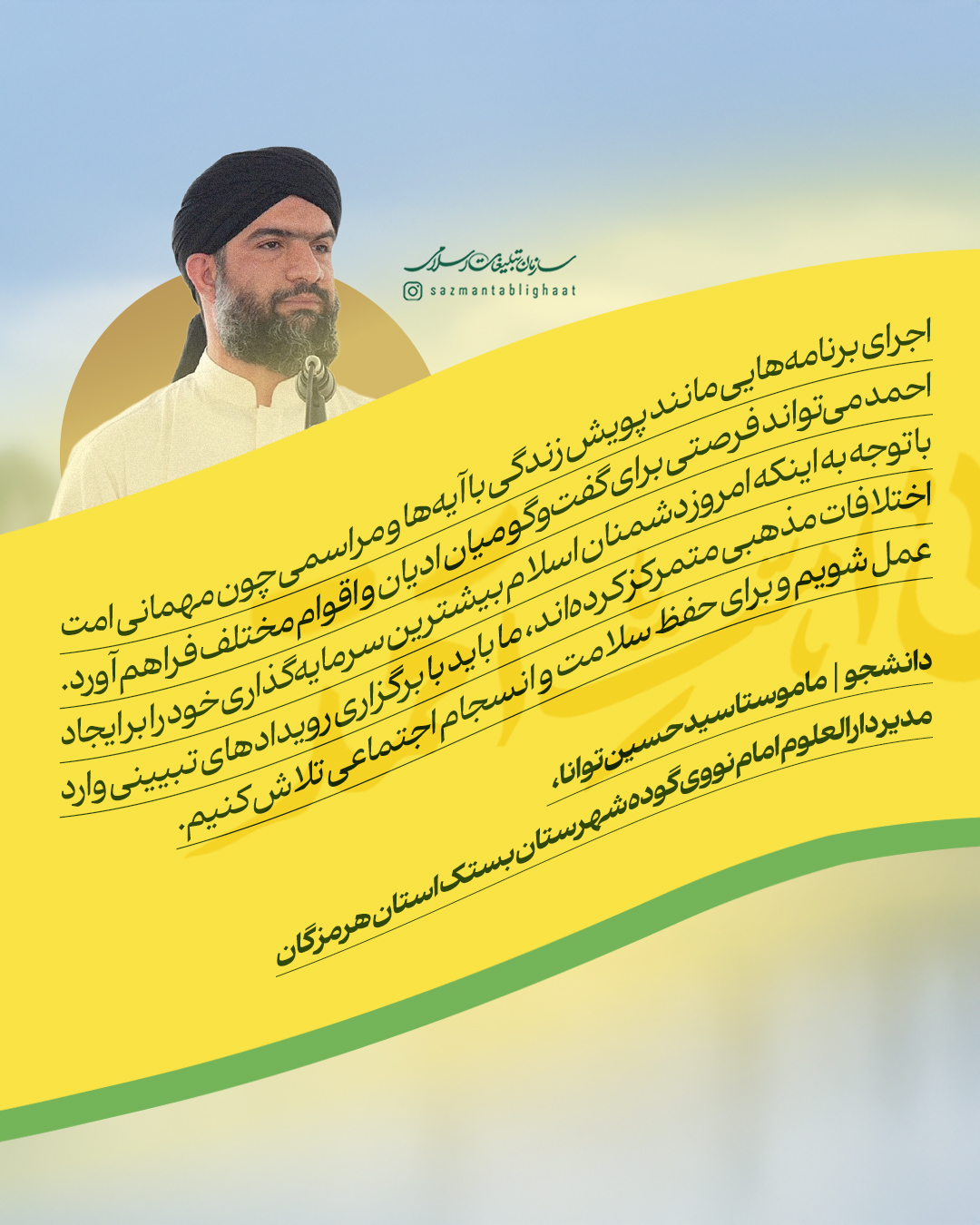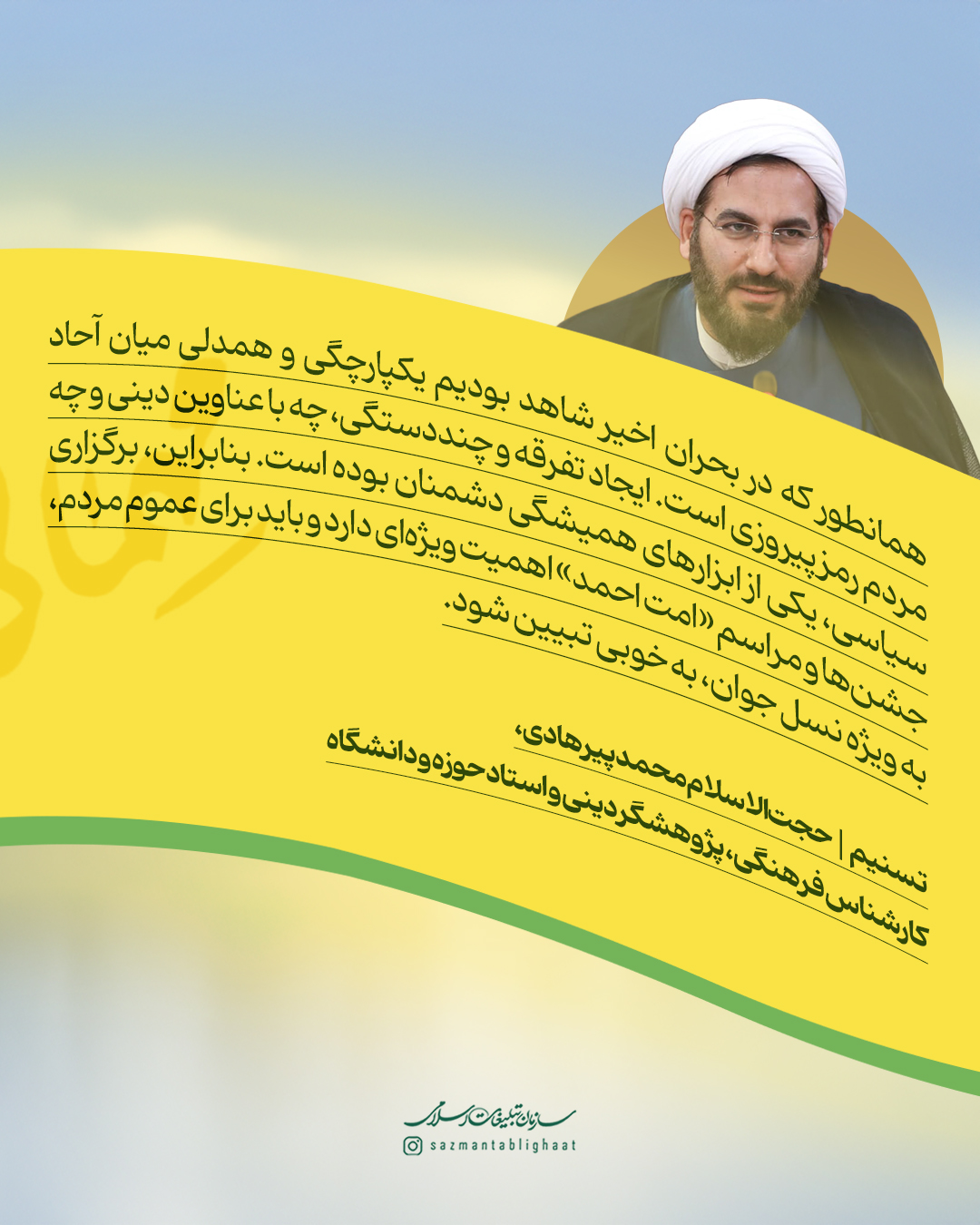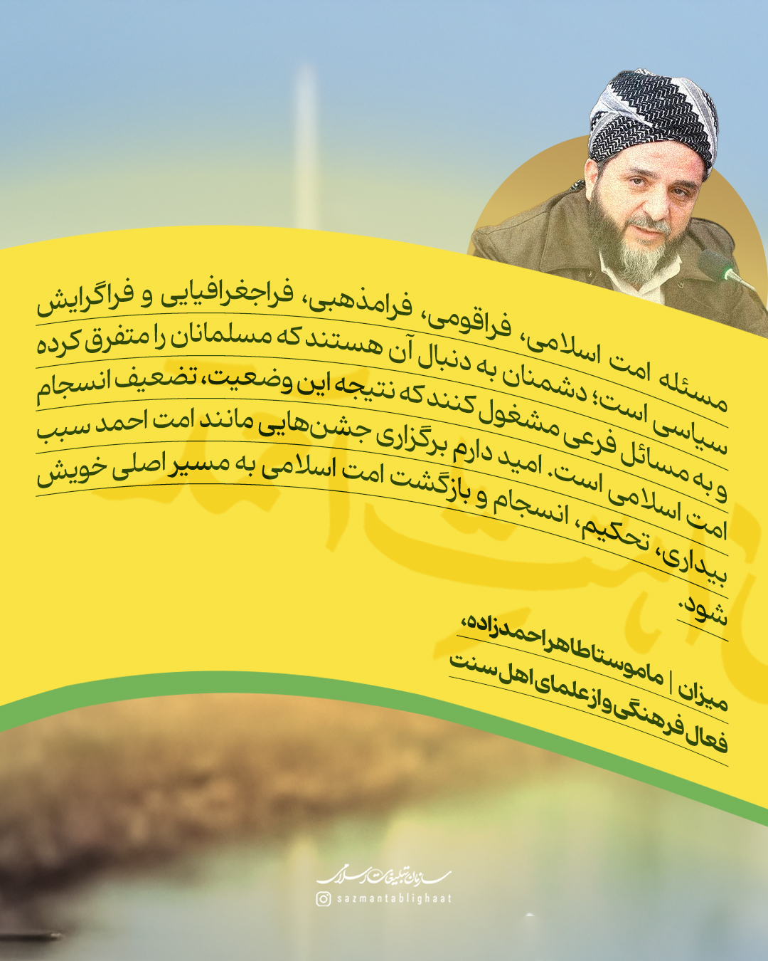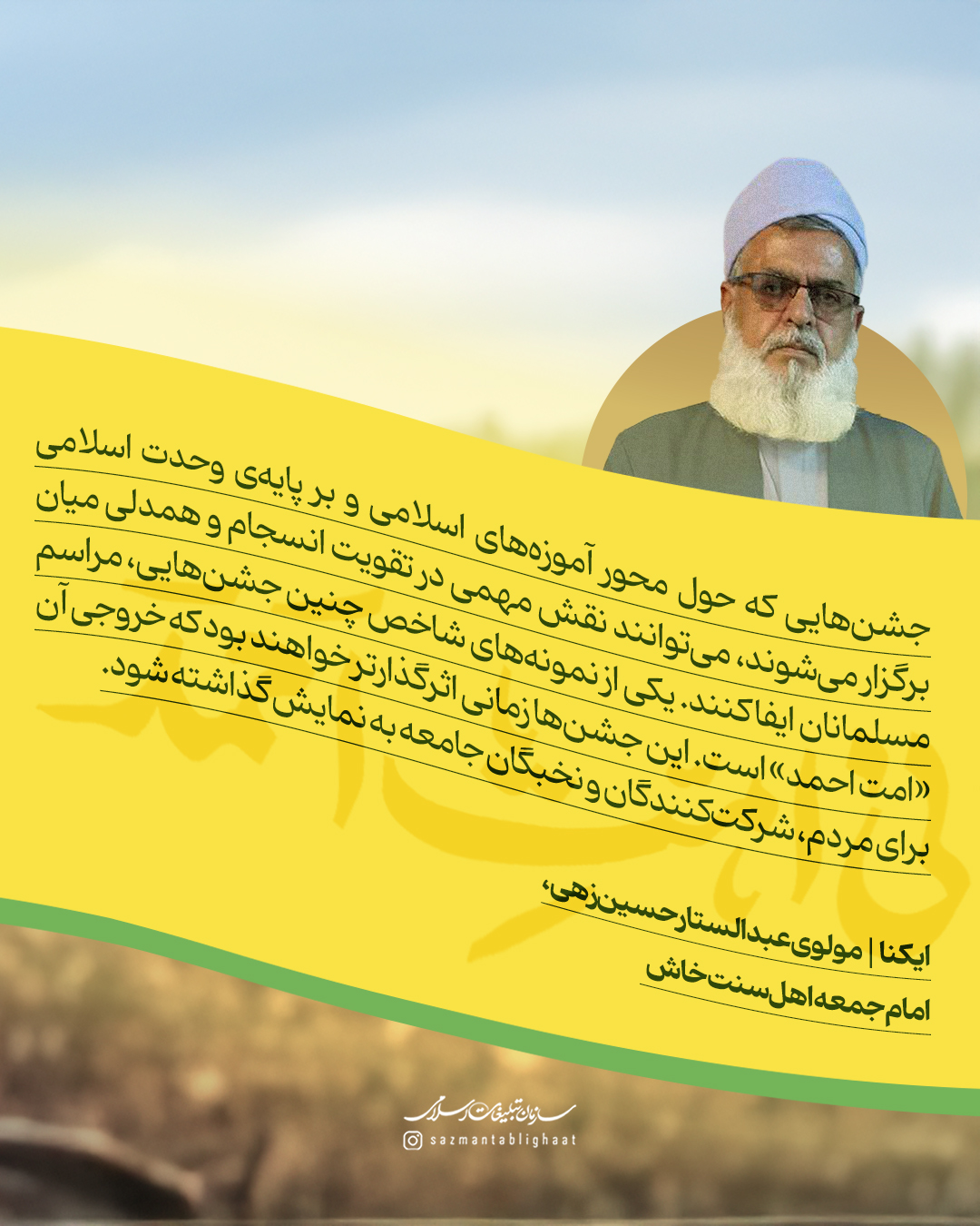 به گزارش روابط عمومی سازمان تبلیغات اسلامی، مهمانی امت احمد و جشن مردمی میلاد پیامبر اکرم سه سال پیش در سنندج آغاز شد و امسال، همزمان با هزار و پانصدمین سال میلاد پیامبر مهربانیها به استانهای مختلف کشور رسید. اینبار جز کردستان، بیش از 8 استان کشور، از سیستان و بلوچستان و بندرعباس تا قم و تهران و گلستان میزبان جشنهای بزرگ مردمی امت احمد در هفته وحدت بودند. جشنهایی که نه تنها رنگ و بوی شادی داشتند، بلکه پیامآور همبستگی و وحدت ملی مردم ایران اسلامی شدند. به همین مناسبت نظر برخی از روحانیون شیعه و اهل سنت را در خصوص مهمانی امت احمد مرور میکنیم.